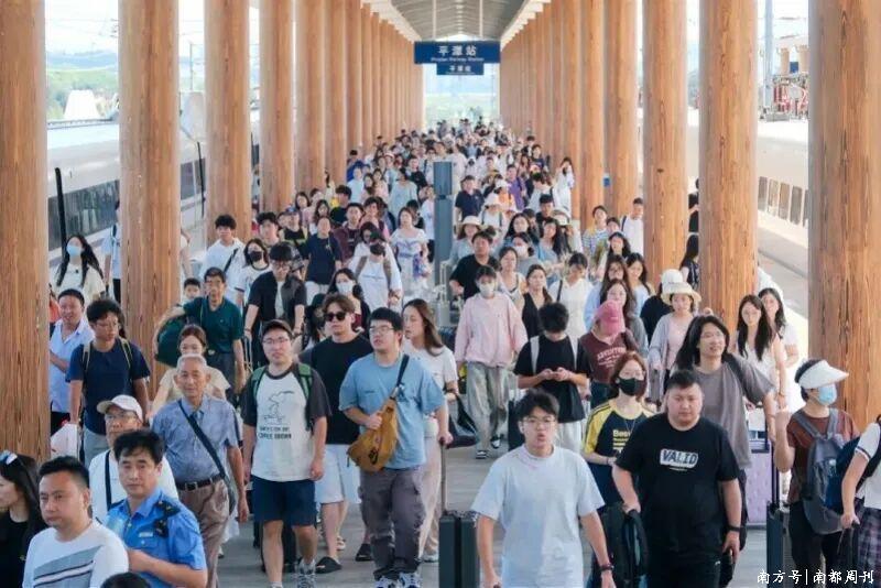10月7日,南都N视频记者从国铁广州局获悉,7日迎来客流返程小高峰,当天预计发送旅客259.3万人次,客流较6日有明显增长。据介绍,当前客流以返程流为主,客流呈现出由周边中小城市、旅游城市向广州、深圳、长沙等主要城市流动的特点。